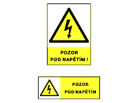 Produkt Pozor pod napětím! z kategorie Výstražné bezpečnostní tabulky a značky - Riziko úrazu elektrickým proudem nabízíme vyrobený z materiálu: samolepící fólie / plast.