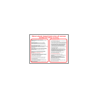 Pravidla bezpečné práce jsou vyrobena ze samolepící fólie. Velikost štítku je A3 (297x420mm). Životnost a stálobarevnost: 3 až 5 let dle použití (exterier/interier).